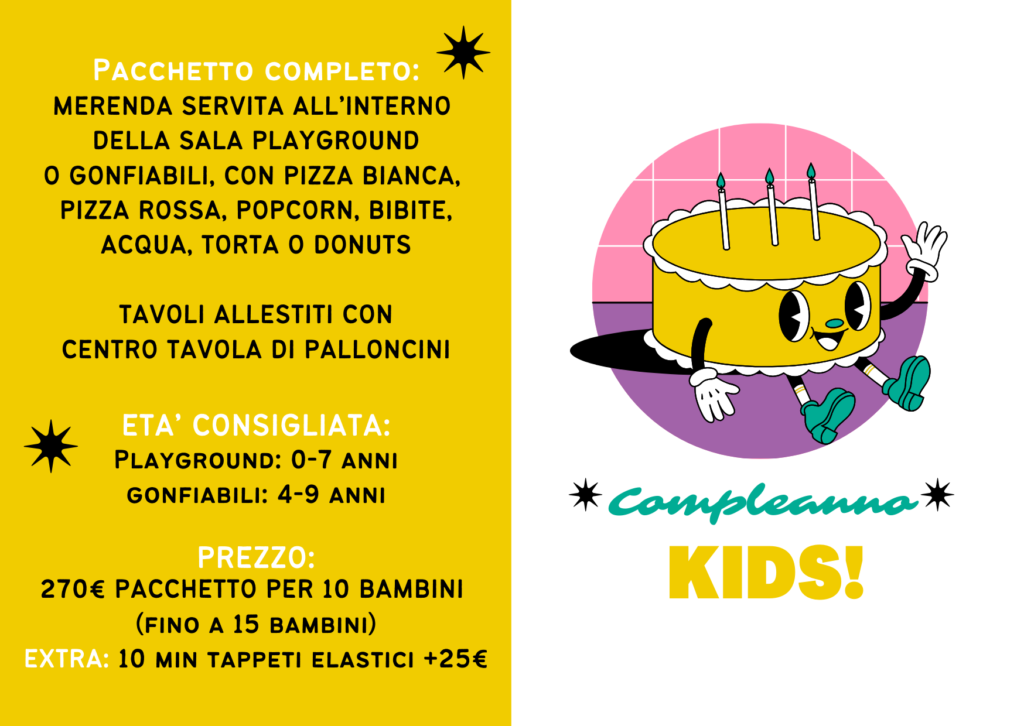 COMPLEANNO A SPORT PARK “VR EXPERIENCE”PROMOZIONE VALIDA PER I GRUPPI DA ALMENO 10 PERSONE8€ CAD. OPPURE TARIFFA ORARIO AD ESO ESCLUSIVO 1 ORA – 160€”Per prenotazioni rivolgersi alle rispettive casse durante l’orario di apertura.